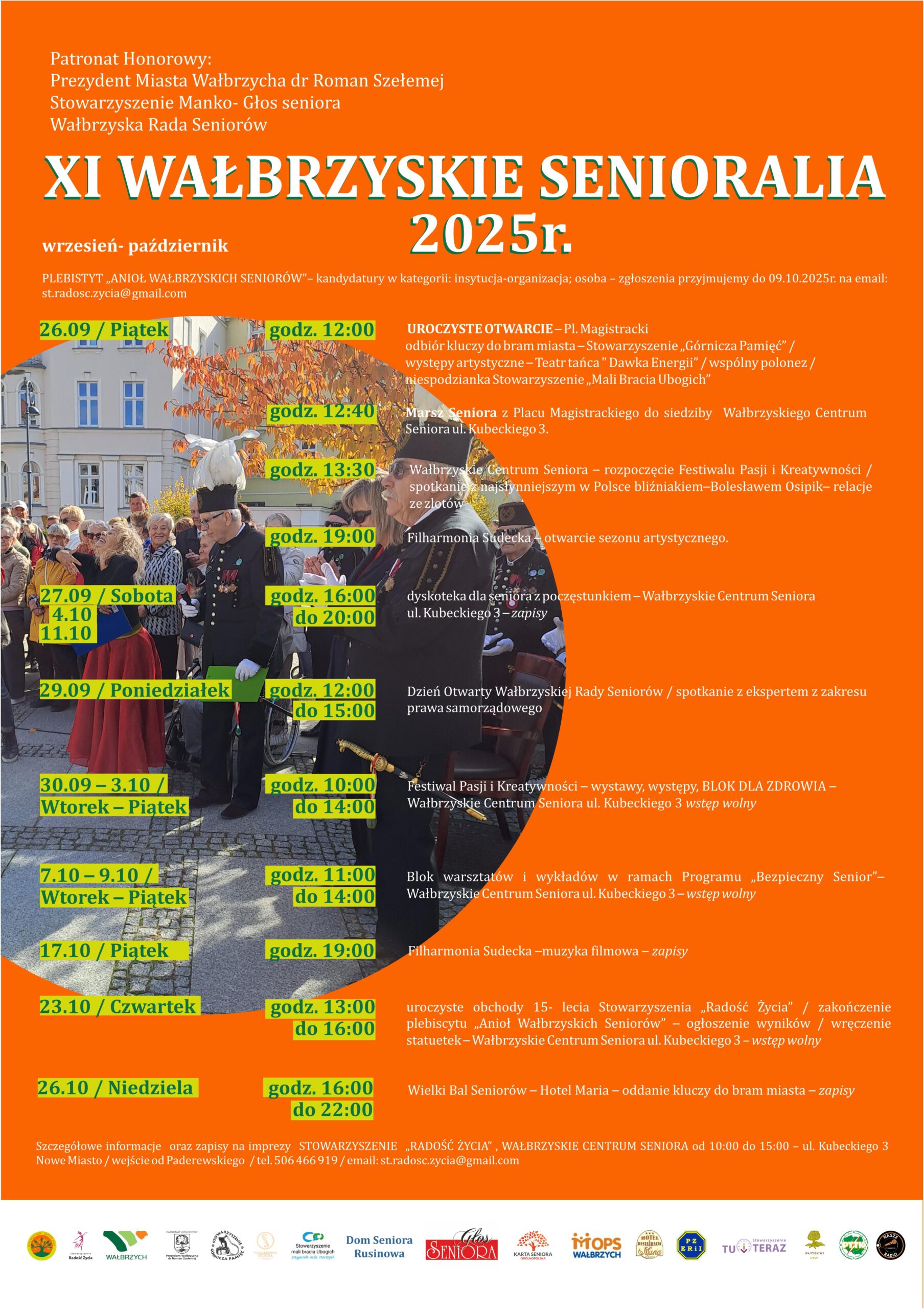 Program Wałbrzyskich Senioraliów: 26.09.2025r. -piątek- godz.12:00- UROCZYSTE OTWARCIE – Pl. Magistracki odbiór kluczy do bram…